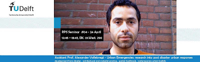 “Urban Emergencies: research into post disaster urban responses” presented by Assistant Prof. Alexander Vollebregt in RPS seminar at Chair of Spatial planning and strategy, Department of Urbanism, Faculty of Architecture, TUDelft.